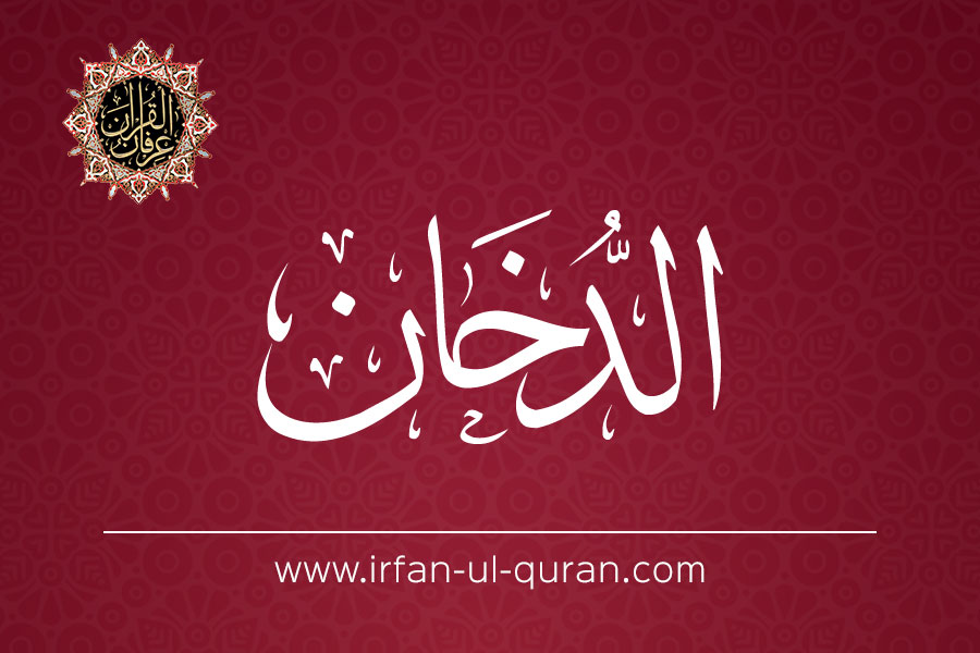 Read Surah ad-Dukhan with English & Urdu translations of the Holy Quran online by Shaykh ul Islam Dr. Muhammad Tahir ul Qadri. It is the 44th Surah in the Quran Pak with 59 verses. The surah's position in the Quran Majeed in Juz 25 and it is called Makki Surah of Quran Karim. You can listen to audio with Urdu translation of Irfan ul Quran in the voice of Tasleem Ahmed Sabri.
