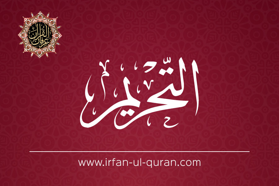 Read Surah at-Tahrim with English & Urdu translations of the Holy Quran online by Shaykh ul Islam Dr. Muhammad Tahir ul Qadri. It is the 66th Surah in the Quran Pak with 12 verses. The surah's position in the Quran Majeed in Juz 28 and it is called Madani Surah of Quran Karim. You can listen to audio with Urdu translation of Irfan ul Quran in the voice of Tasleem Ahmed Sabri.