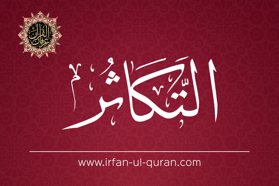 Read Surah at Takathur with English & Urdu translations of the Holy Quran online by Shaykh ul Islam Dr. Muhammad Tahir ul Qadri. It is the 102nd Surah in the Quran Pak with 8 verses. The surah's position in the Quran Majeed in Juz 30 and it is called Makki Surah of Quran Karim. You can listen to audio with Urdu translation of Irfan ul Quran in the voice of Tasleem Ahmed Sabri.