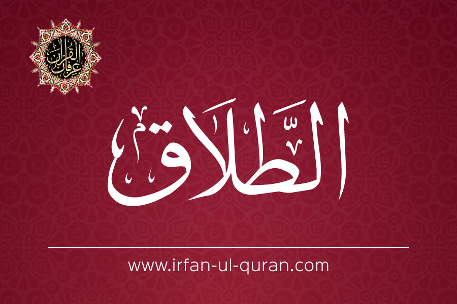 Read Surah at-Talaq with English & Urdu translations of the Holy Quran online by Shaykh ul Islam Dr. Muhammad Tahir ul Qadri. It is the 65th Surah in the Quran Pak with 12 verses. The surah's position in the Quran Majeed in Juz 28 and it is called Madani Surah of Quran Karim. You can listen to audio with Urdu translation of Irfan ul Quran in the voice of Tasleem Ahmed Sabri.