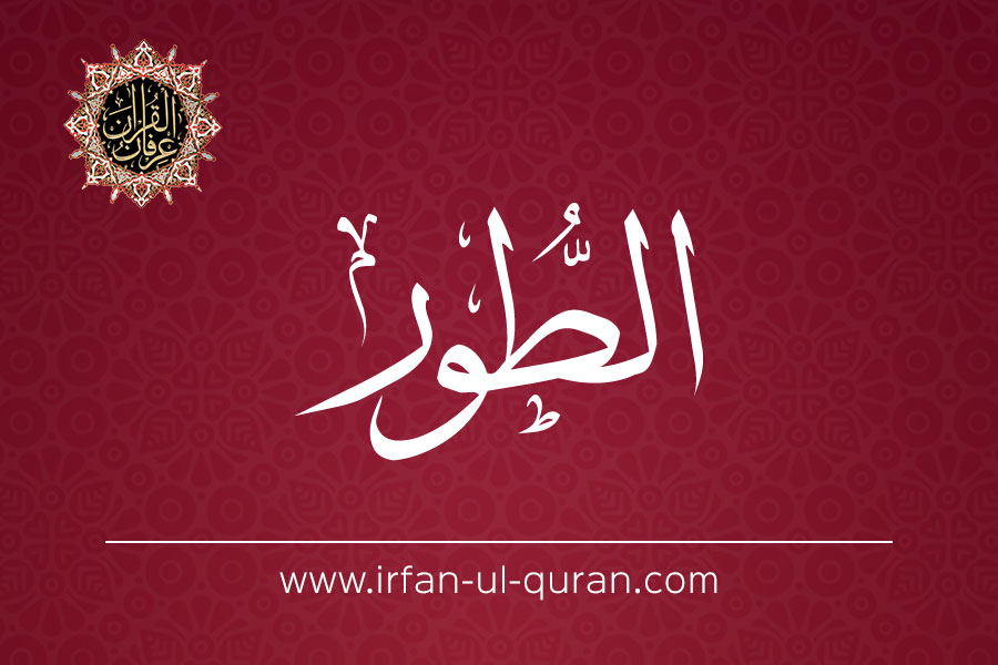 Read Surah at-Tur with English & Urdu translations of the Holy Quran online by Shaykh ul Islam Dr. Muhammad Tahir ul Qadri. It is the 52nd Surah in the Quran Pak with 49 verses. The surah's position in the Quran Majeed in Juz 27 and it is called Makki Surah of Quran Karim. You can listen to audio with Urdu translation of Irfan ul Quran in the voice of Tasleem Ahmed Sabri.